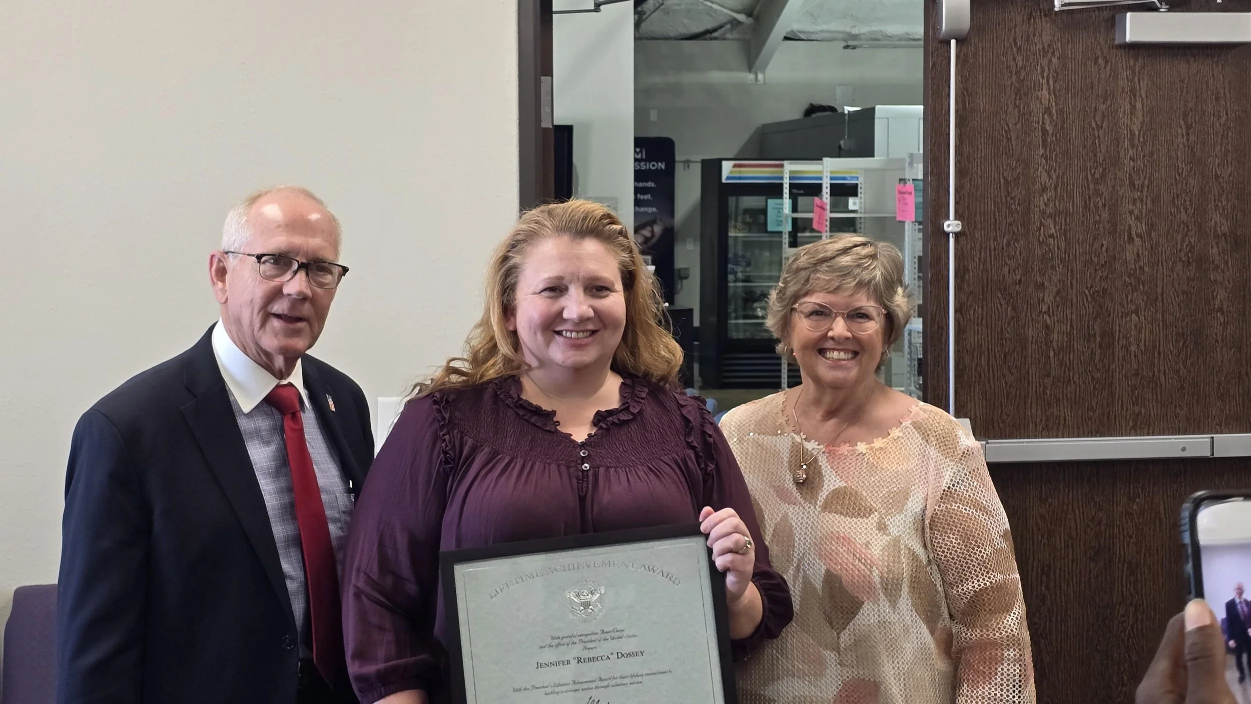 Rebecca Dossey, a Moore resident and Red River Community Corps (RRCC) VISTA member, was recognized with the prestigious Presidential Lifetime Achievement Award by Norman Mayor Larry Heikkila. This honor celebrates outstanding volunteers and recognizes the positive impact they make in their local communities.